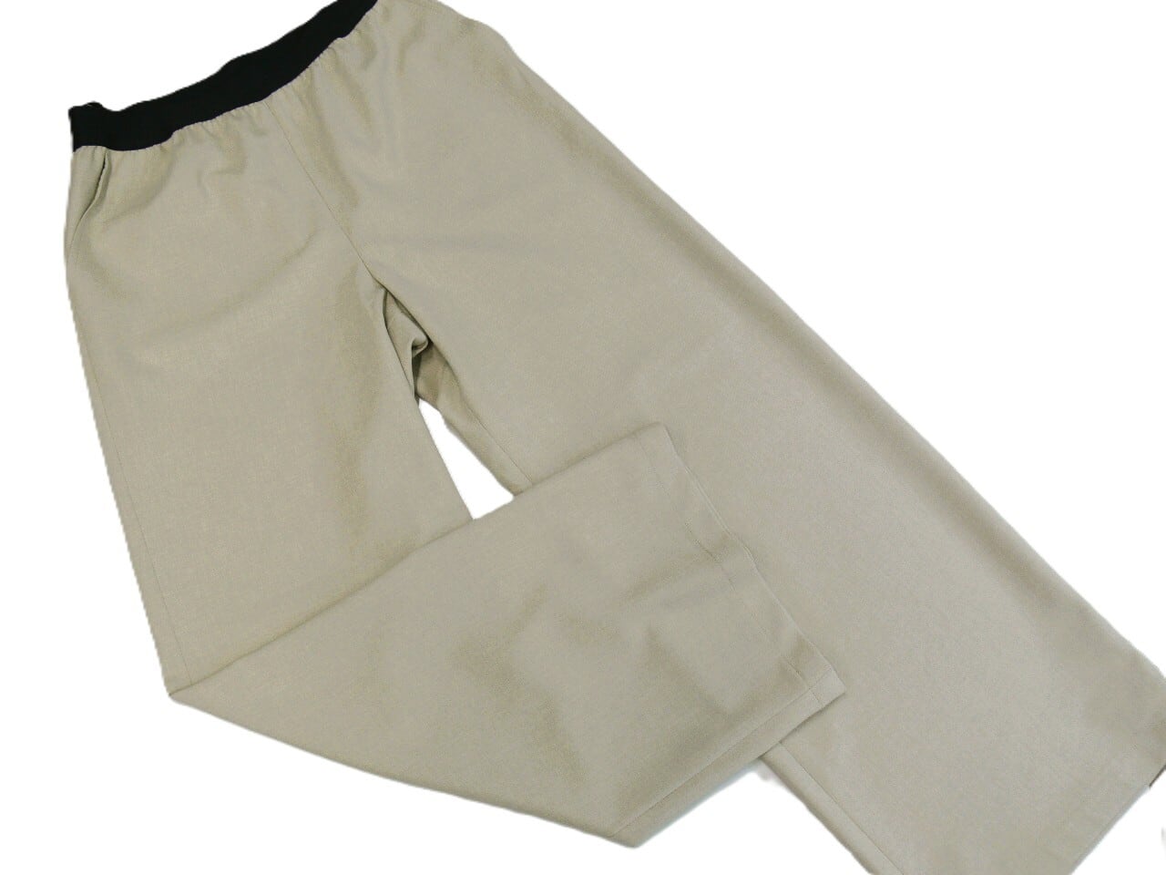 ポリエステル100%素材ながら麻のようなドライタッチで快適な着心地を実現します。シンプルなストレートシルエットが、スタイリングに合わせやすく、さまざまなシーンで活躍するアイテムです。ウエスト部分にはゴムが入っており、着脱も楽々で、日常使いにも最適です!
