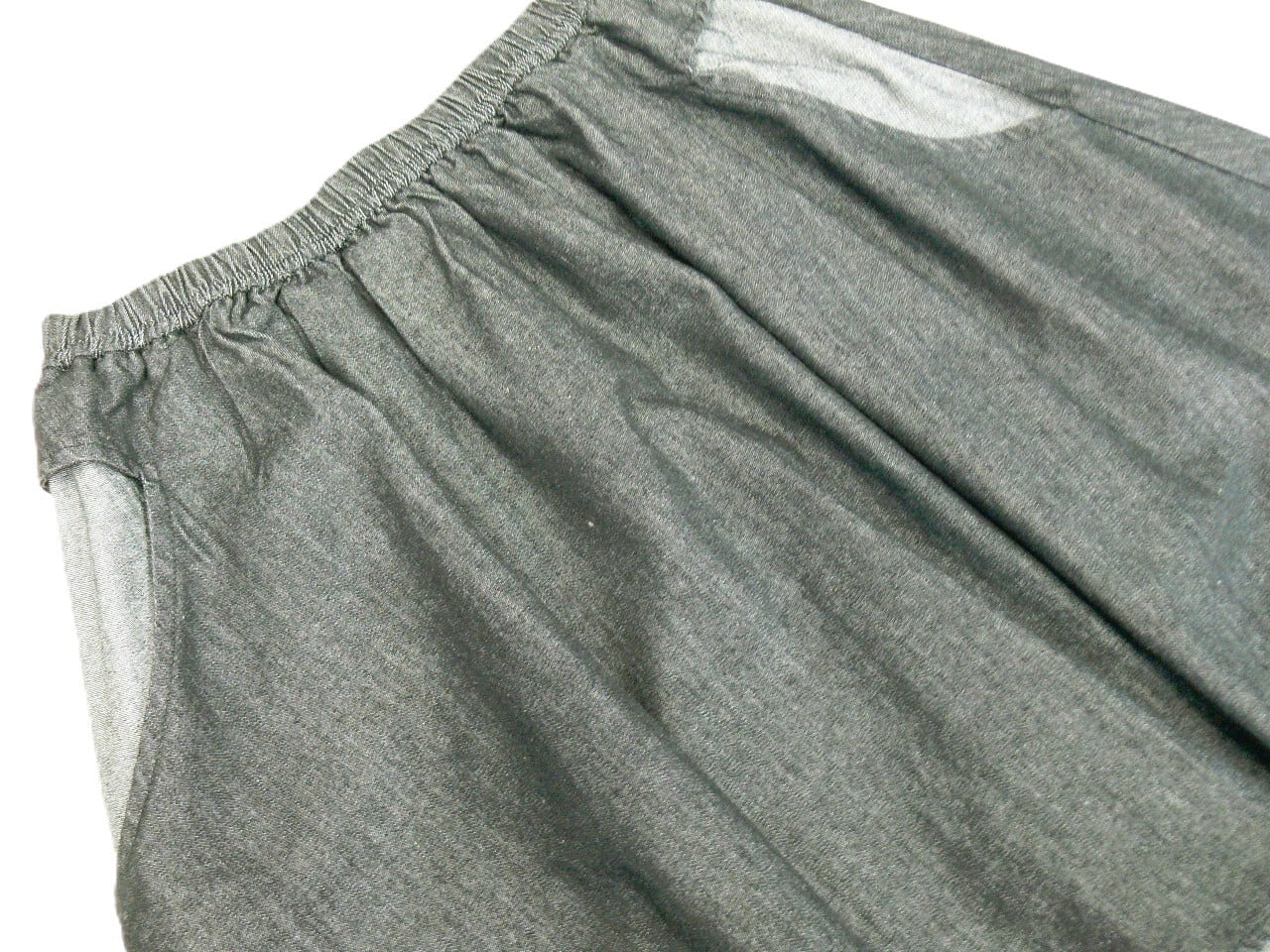 デニムのカジュアル感とバルーンシルエットの女性らしさが見事に融合したスカートです。ユニークな風合いが魅力的で、どんなトップスとも合わせやすい一品です!ウエスト部分にはゴムが入っているため、快適な着用感を実現しています。