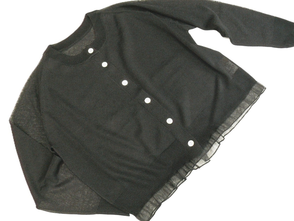◆【Le Cour】61091 裾シフォン ノーカラーカーディガン◆