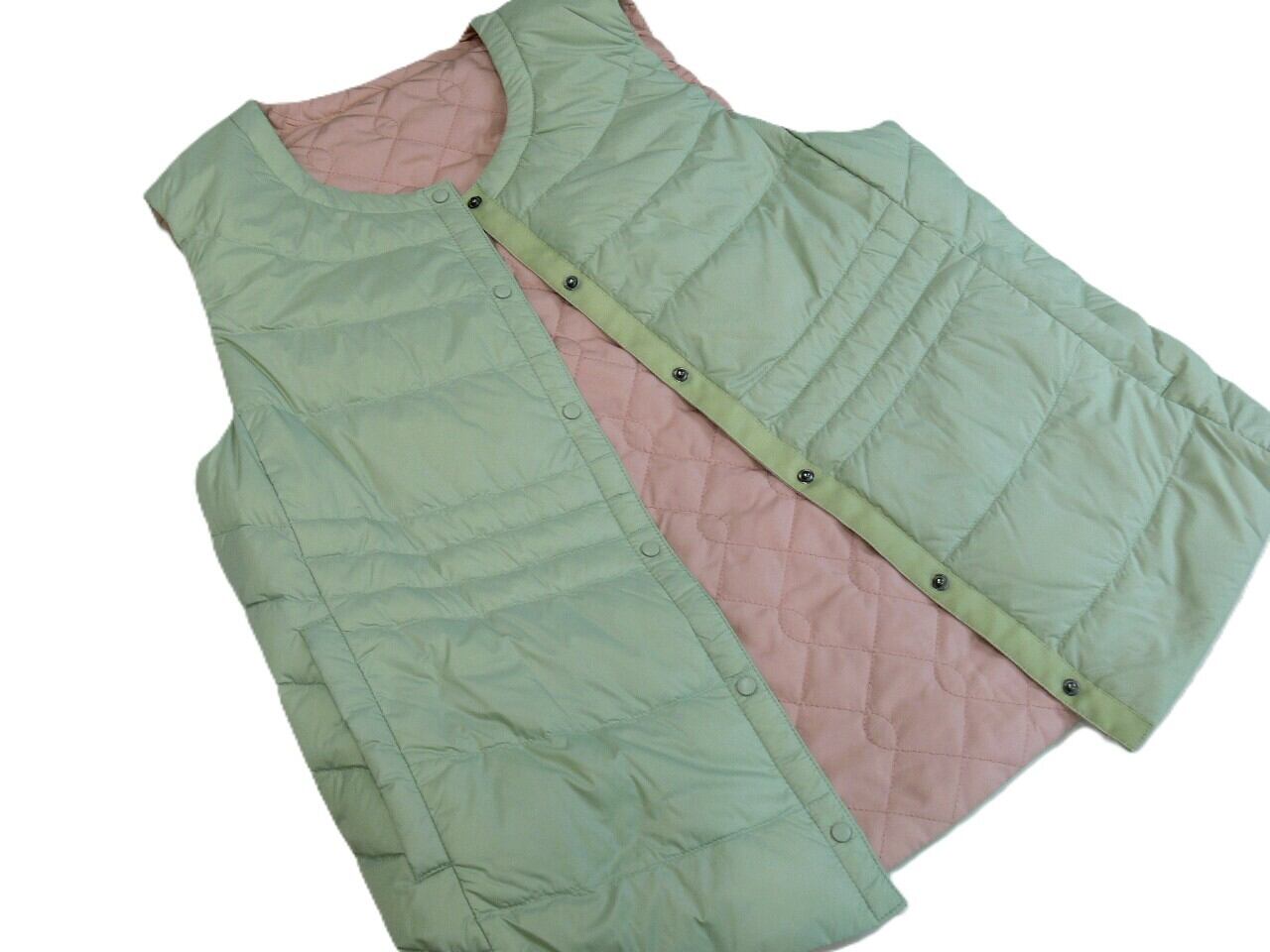 表裏どちらでも着用できるデザインで、その日のコーディネートに合わせてお楽しみいただけます。前身頃センターでのボタン開閉、両サイドには便利なポケットを配置し、実用性もバッチリです!