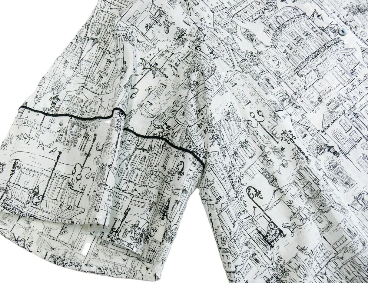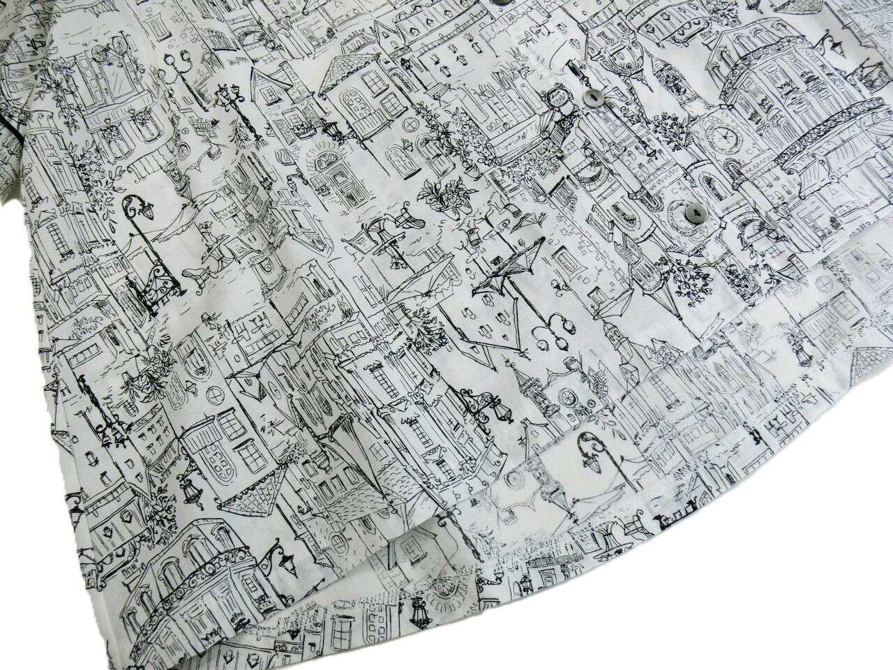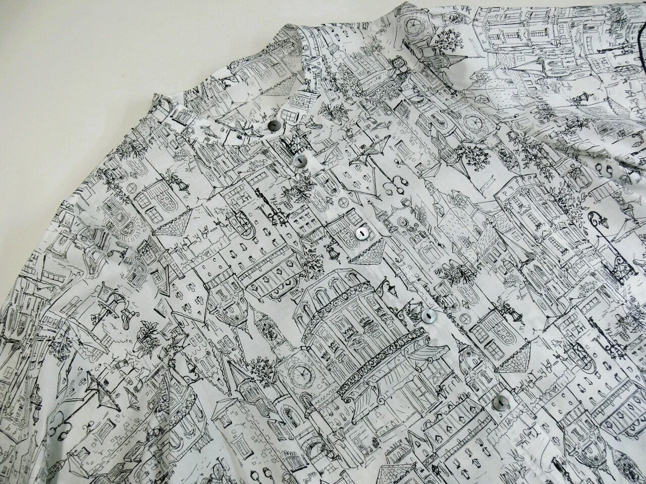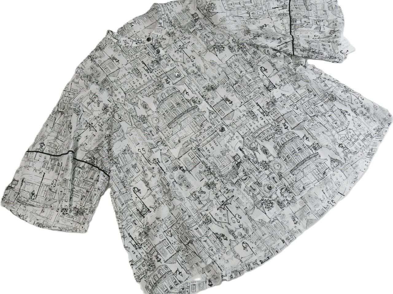 やわらかな綿100%素材を使用したこのブラウスは、肌触りが良く、日常使いはもちろん、特別なシーンにもぴったりなアイテムです。ヨーロッパの街並みを思い出させるプリントデザインが、コーディネートのアクセントとなり、さまざまなスタイルを引き立てます。