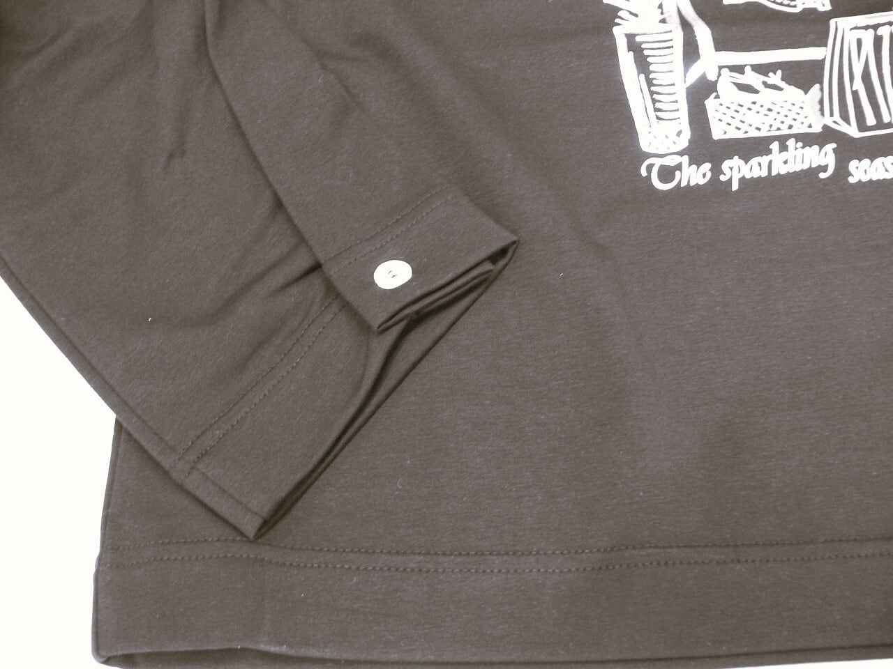前面に施されたユニークなプリントが魅力的で、シンプルながらもおしゃれな印象を与え、さまざまなスタイルと組み合わせやすくなっています。