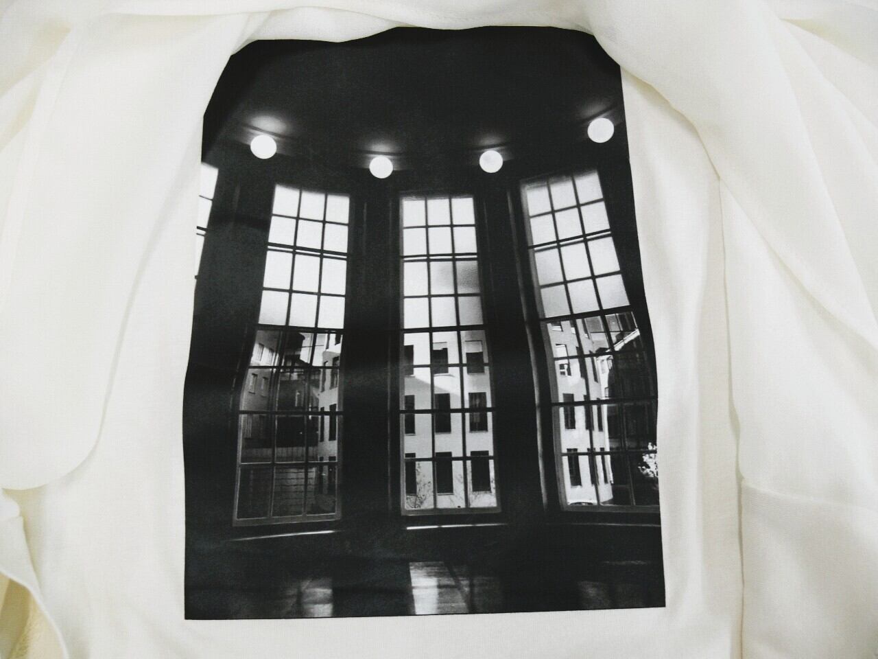 モノクロームの写真がプリントされたレイヤードタイプのTEEブラウスです。