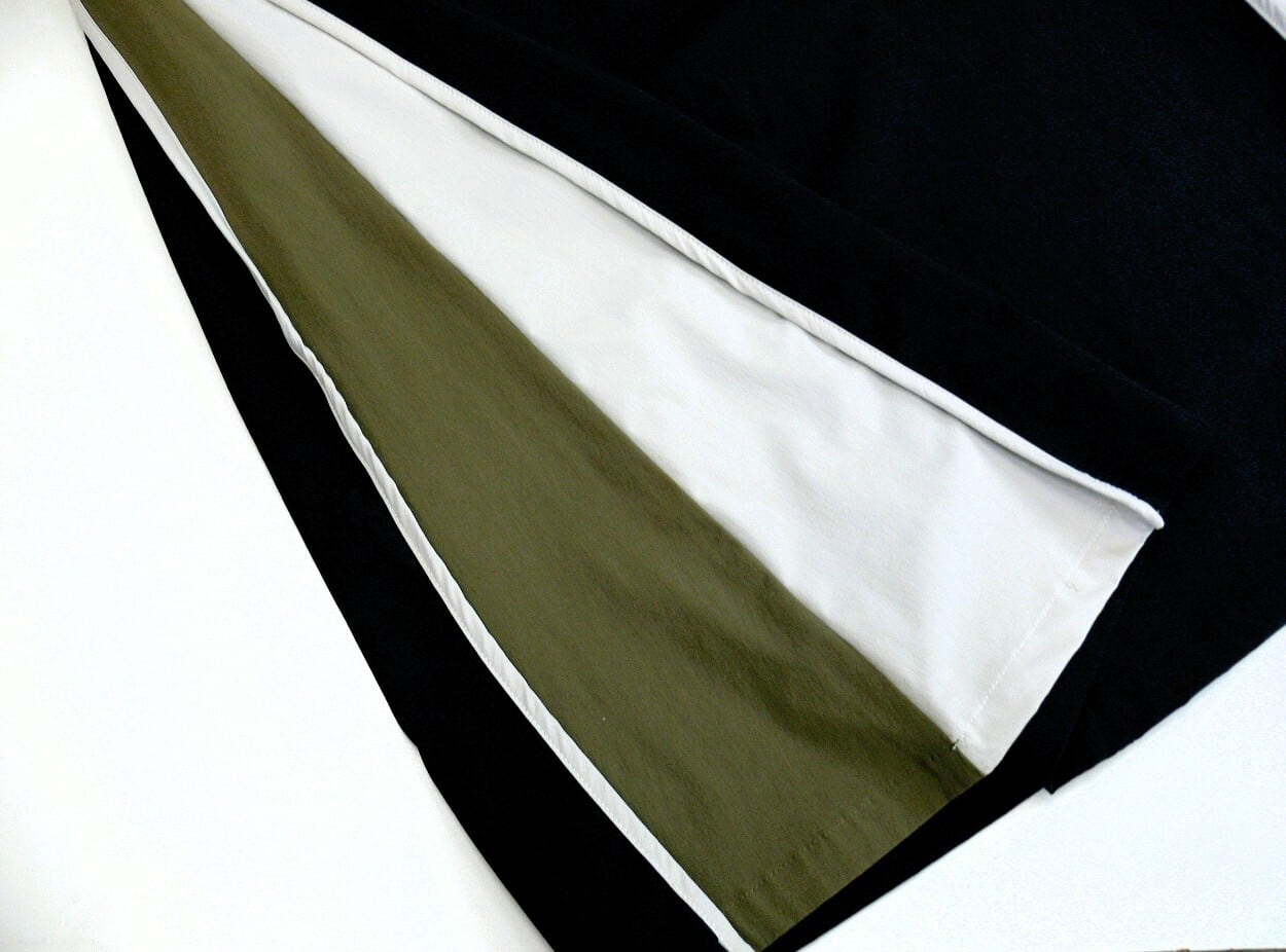 両サイドにマチを付けて、さらに同素材を配色で切り替えポイントを持たせたデザインです。